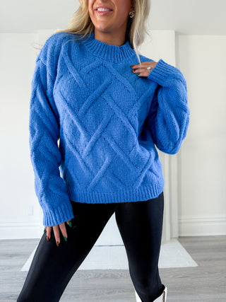 ON STAGE MOCK NECK NEW CABLE SWEATER (BLUE) - SAGE THE LABEL