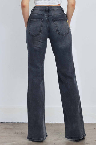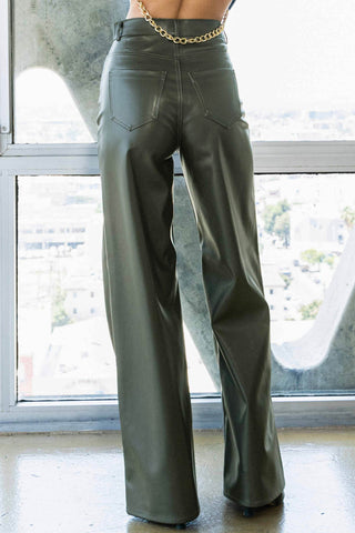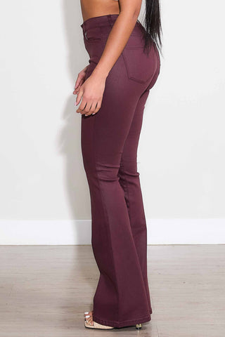 COATED BURGUNDY BOOT CUT PANTS (BURGUNDY)