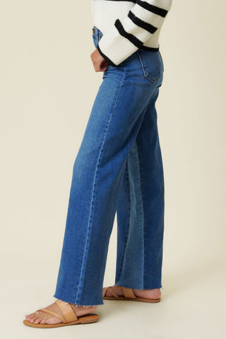 FRONT TWO POCKET STRETCH WIDE LEG DENIM JEANS (DARK DENIM)