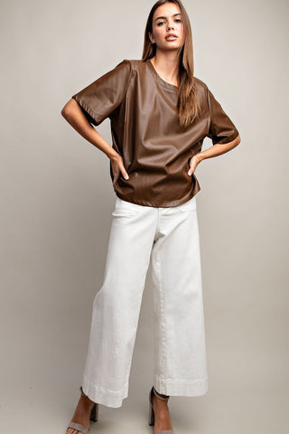 LEATHER SHORT SLEEVE TOP (BROWN)