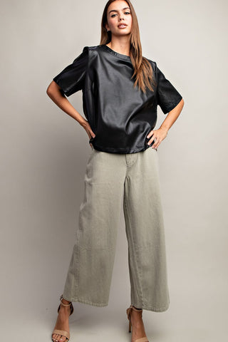 LEATHER SHORT SLEEVE TOP (BLACK)
