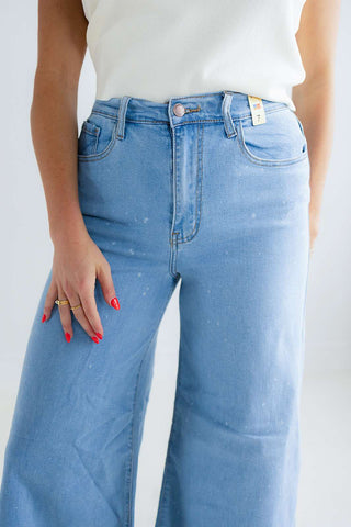 HIGH WASITED WIDE LEG W PAINT SPLATTER DETAIL
