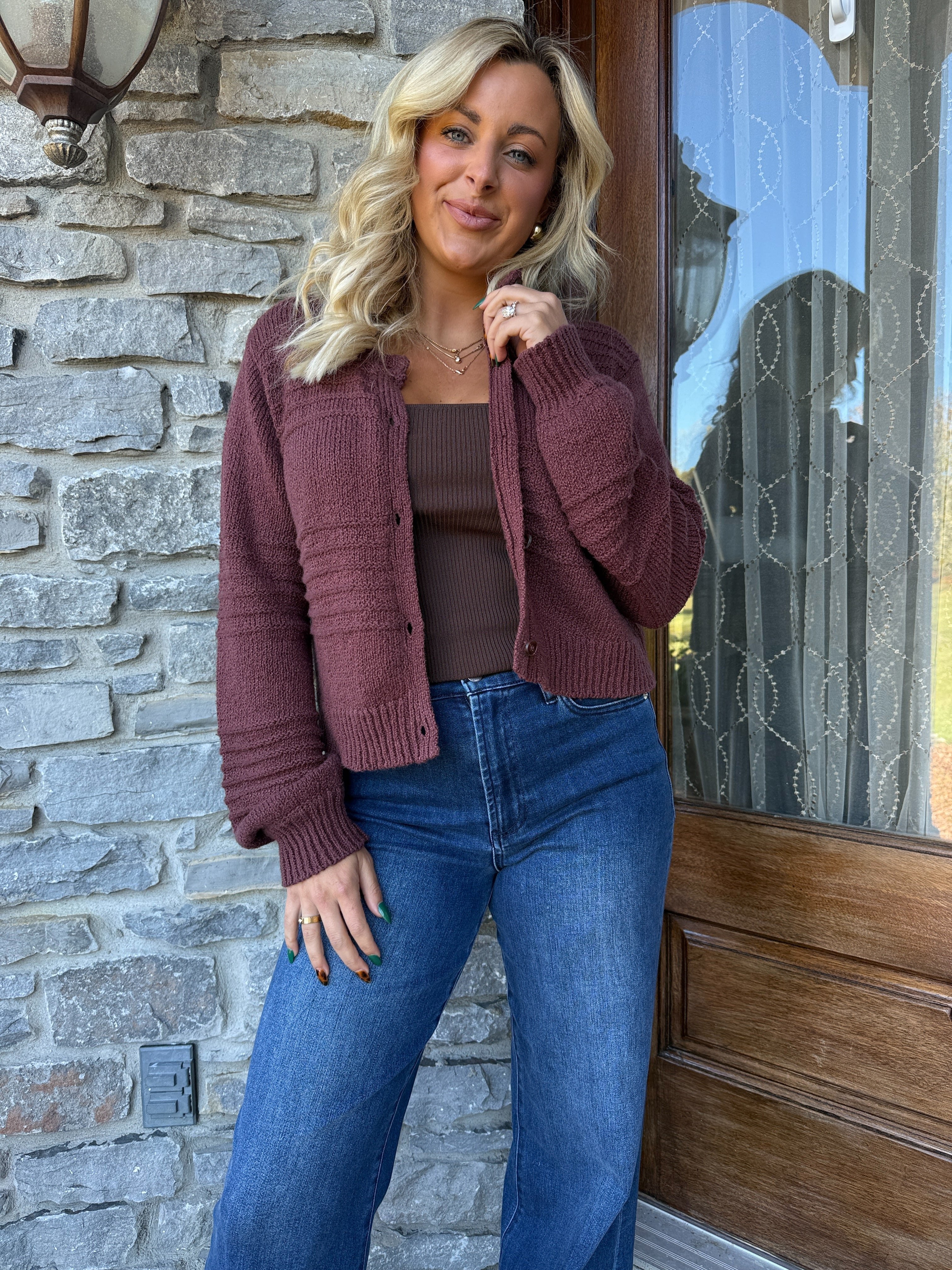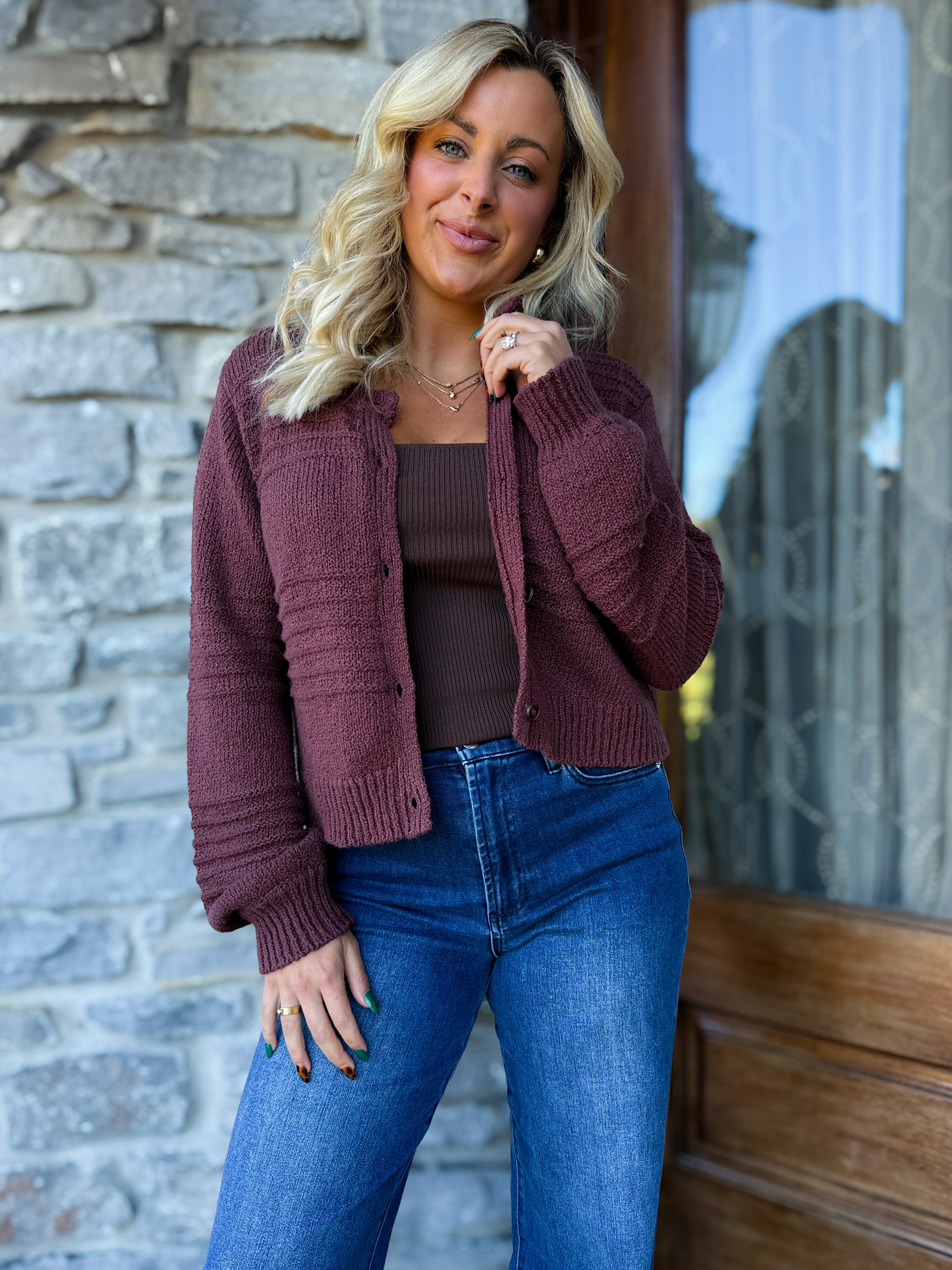 Dimensional tonal stripes and subtle balloon sleeves give this lightweight cardigan just the right amount of texture. It's that versatile layer you’ll throw on from your morning coffee run to weekend errands.