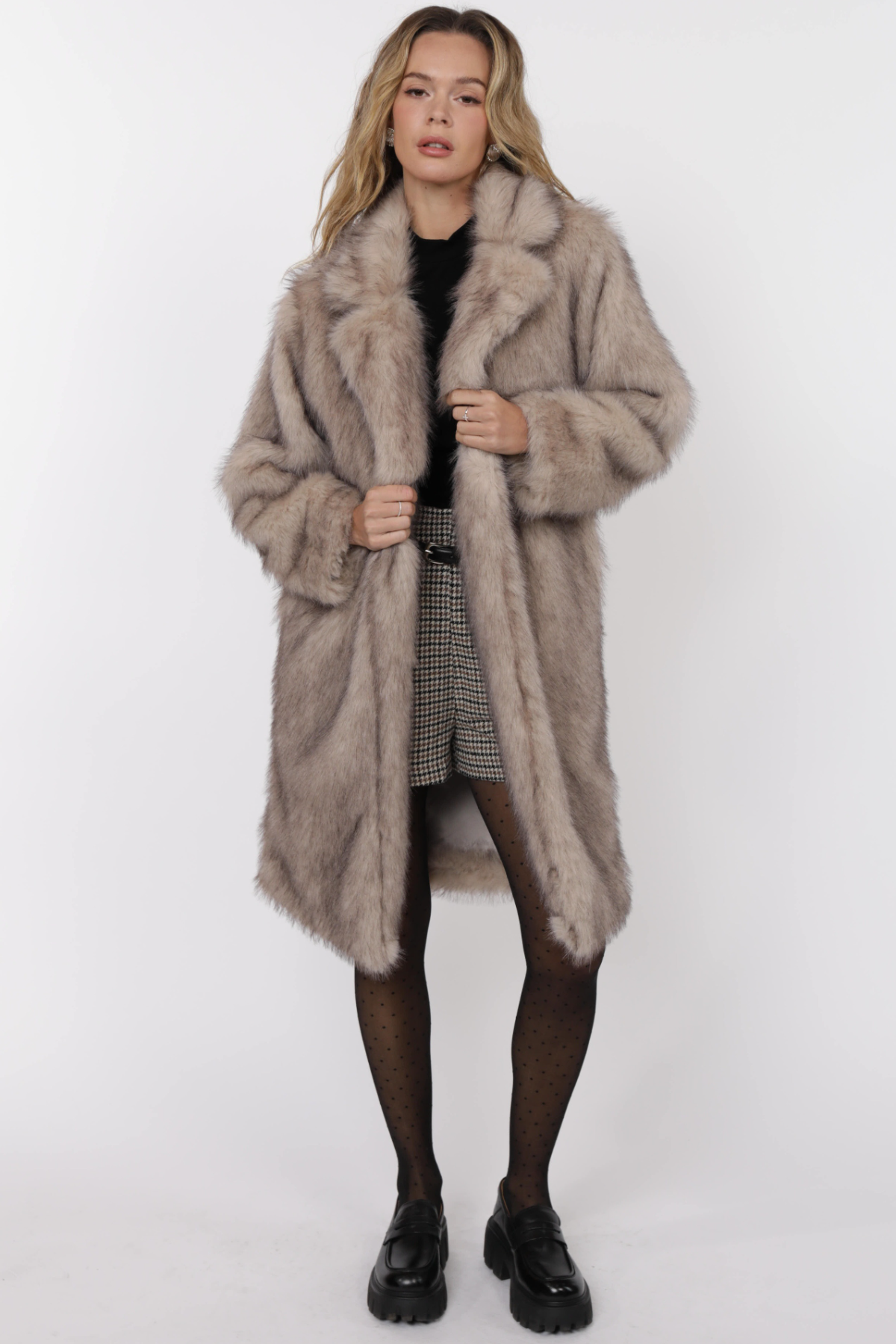 The Pixie Tipped Vegan Fur Coat in beige and brown combines style and compassion effortlessly. Crafted with soft, long sleeves and sustainable vegan materials, this coat offers a warm, luxurious feel while staying animal-friendly. Its beautiful two-tone design adds depth and elegance, making it perfect for any occasion where you want to stand out with a cruelty-free, fashionable statement. Stay cozy, confident, and conscious with this must-have addition to your wardrobe.