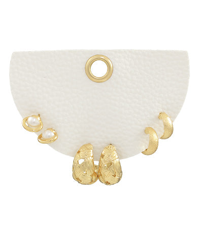 Pearl & Textured Multi 3Ps Earrings Set