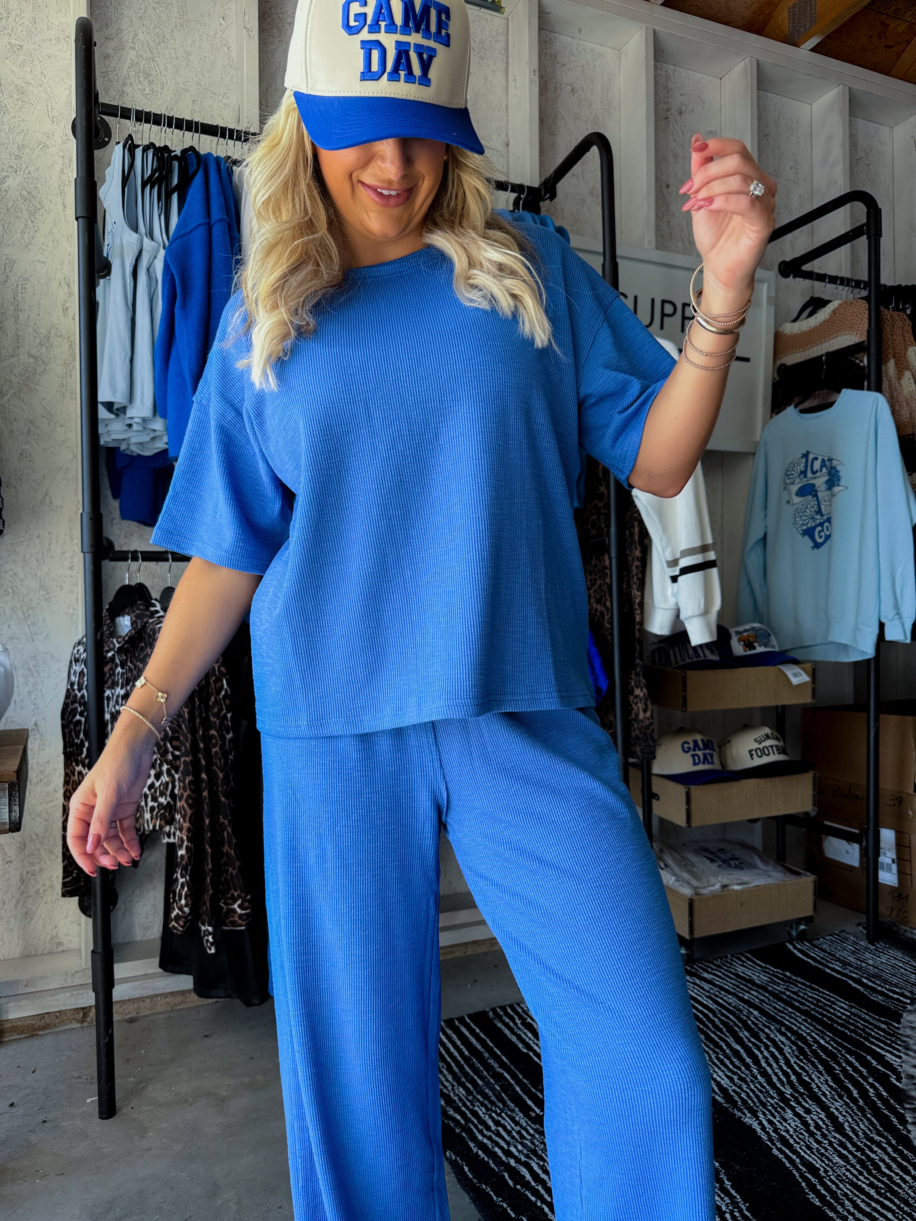 -Loose Fit -Textured Knit -Top and Pants Set 67% polyester 29% cotton 4% spandex