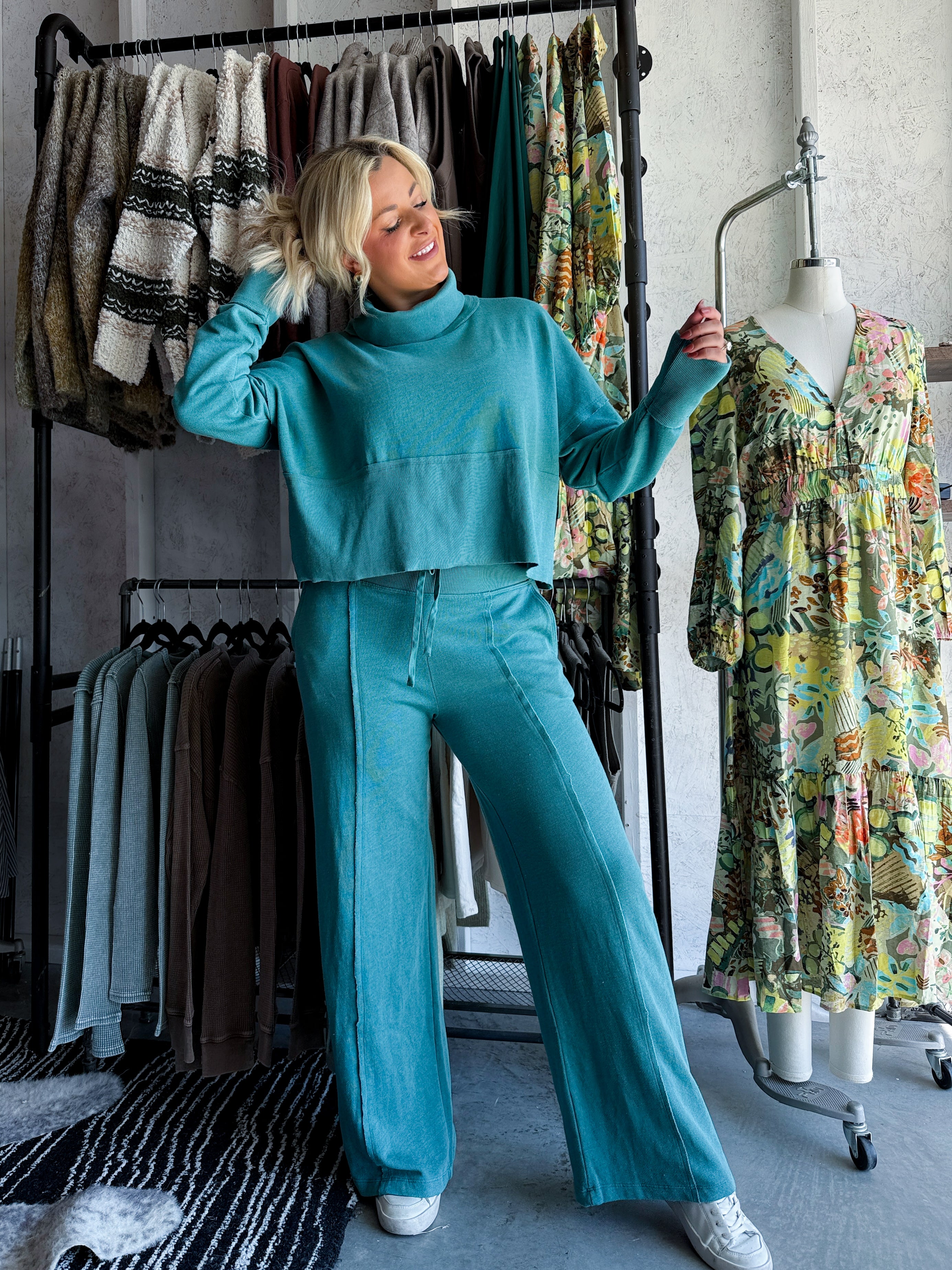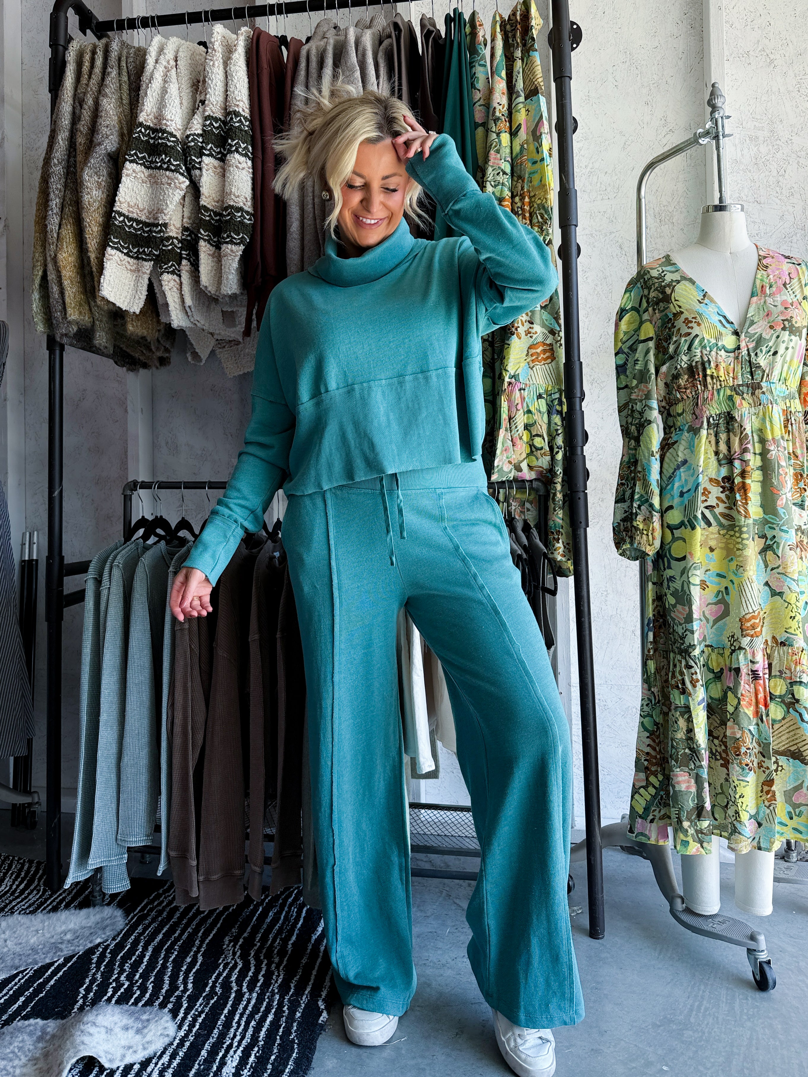 Terry Wide Leg Set (Slate Green)