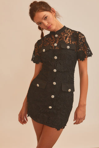 LONG SLEEVE MOCK NECK MINI DRESS WITH FUR TRIM (BLACK)