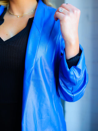 FAUX LEATHER BLAZER (ROYAL BLUE)