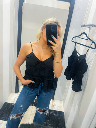 SWEET TREAT RUFFLE TANK TOP (Black) -Sadie & Sage