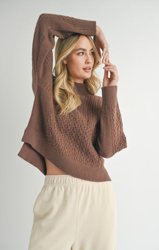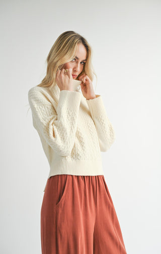 TARA V-NECK CABLE SWEATER (Ivory)