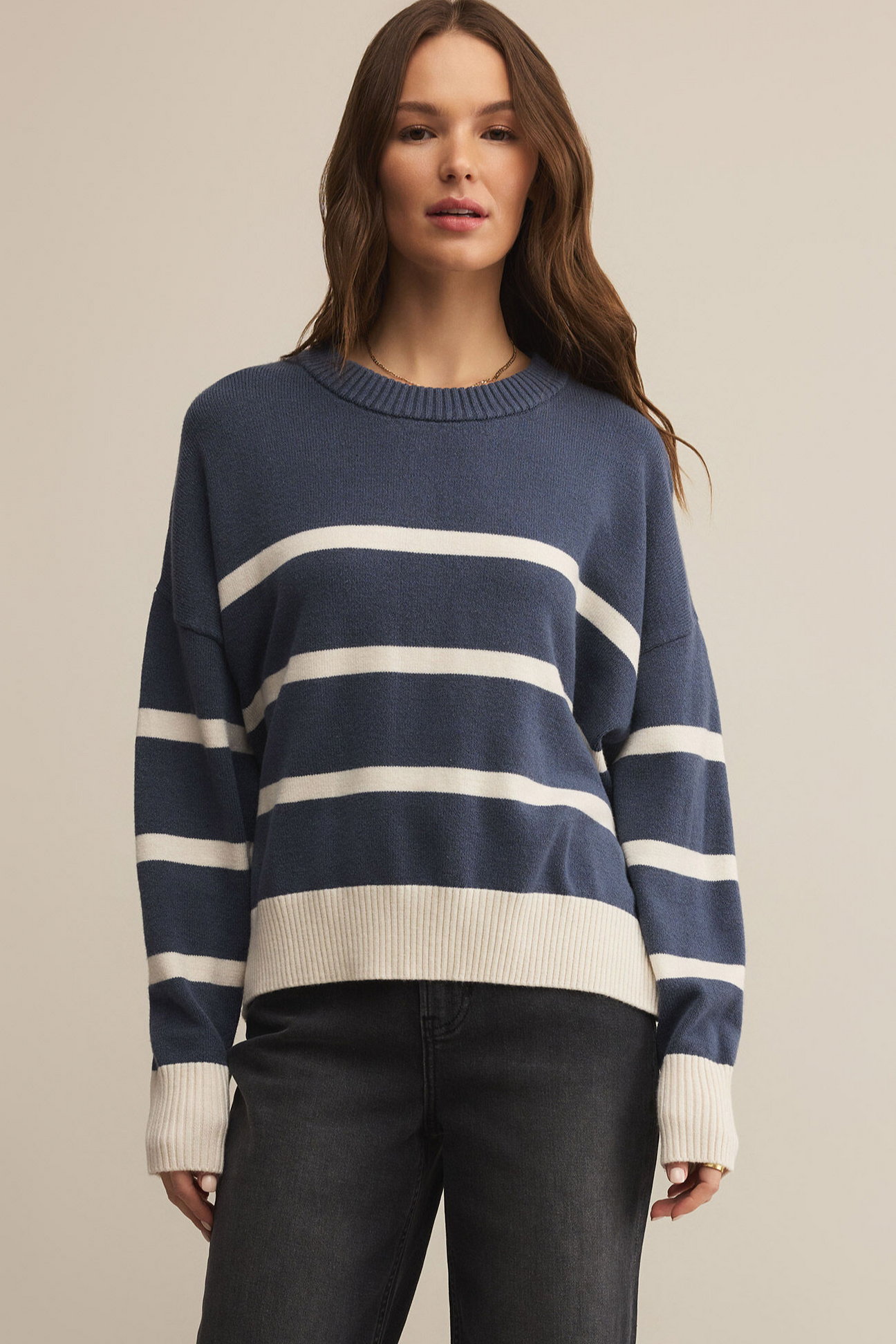 Z Supply Jordane Striped Sweater in Storm Cloud Heather