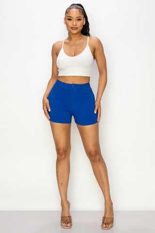 HIGH WAISTED COLORED SUPER-STRETCH WOMEN SHORTS IN ROYAL BLUE